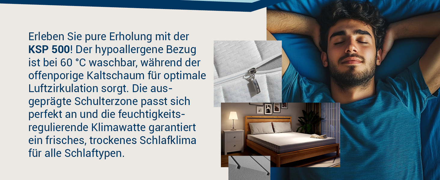 • Optimales Schlafklima: Dank fortschrittlicher 3D-Linienschnitttechnik und Klimawatte wird Temperaturausgleich und Luftzirkulation gefördert.