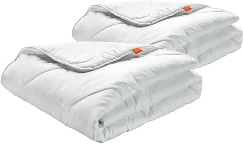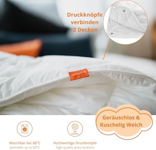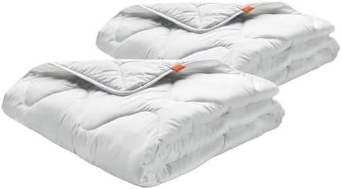 Die Füllung besteht ebenfalls zu 100% aus Polyester (Klima Faser), die nach dem strengen Öko-Tex Standard 100 zertifiziert ist. Die Bettdecke ist in zwei Varianten verfügbar: eine leichte Decke mit minimaler Füllung und eine mittlere Decke mit moderatem Füllmaterial. Diese Kombination aus zwei Decken macht sie zur idealen Wahl für alle vier Jahreszeiten.