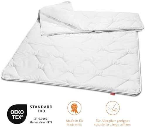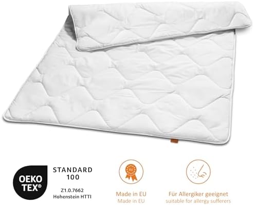 Hergestellt in der EU, erfüllt die Bettdecke die strengen Auflagen des Öko-Tex 100 Standards, was sie zur perfekten Wahl für gesundheitsbewusste Käufer macht. Zudem sind die Bettdecken in 15 verschiedenen Größen erhältlich, sodass für jedes Bett, egal ob für Erwachsene oder Kinder, die richtige Größe zur Verfügung steht.