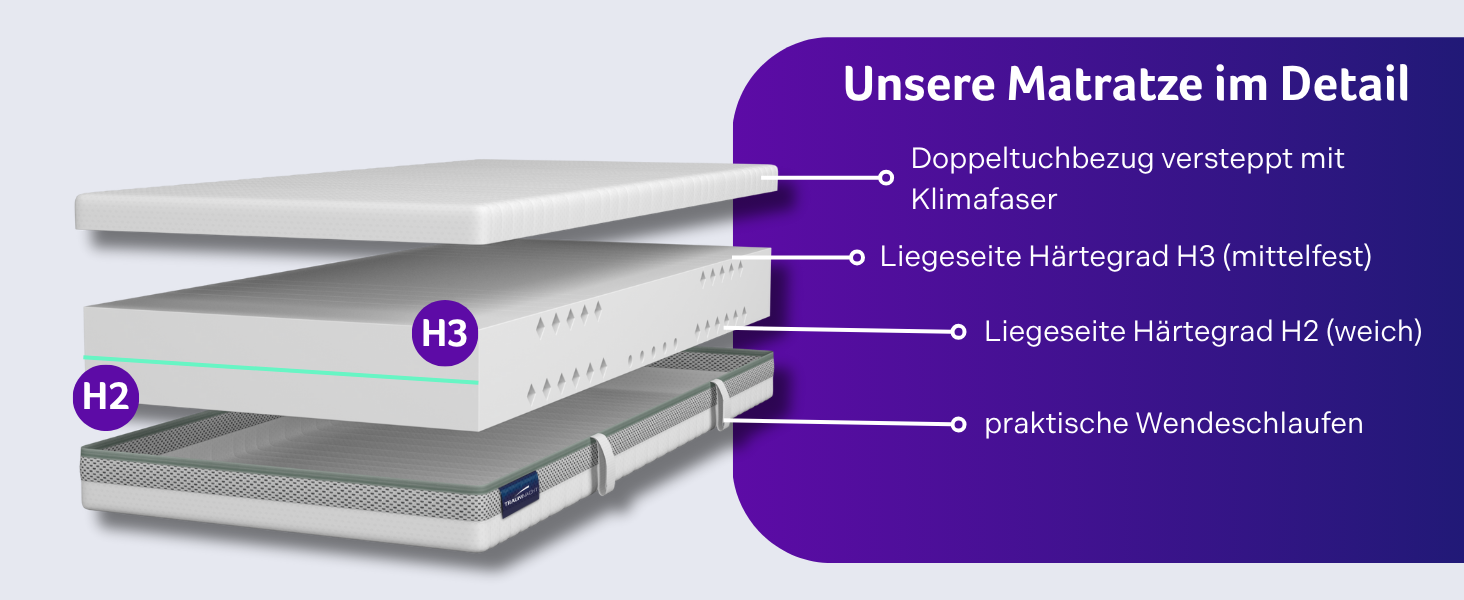 Erleben Sie höchsten Schlafkomfort und investieren Sie in Ihre Gesundheit – mit der orthopädischen 7-Zonen Kaltschaummatratze von Traumnacht. Gönnen Sie sich die Dicke des Traums!