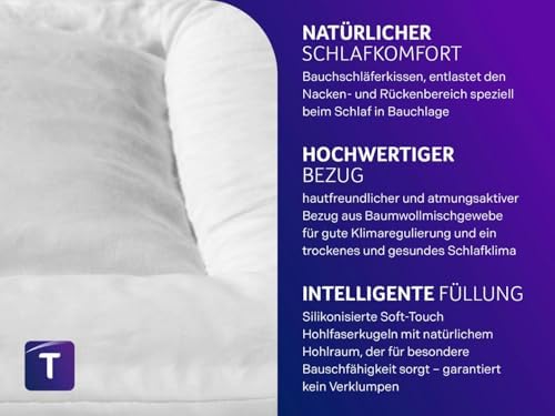• Optimale Unterstützung für Bauchschläfer: Das Kissen ist speziell für die Bauchschläferposition konzipiert und verhindert Verspannungen im Nacken- und Rückenbereich.