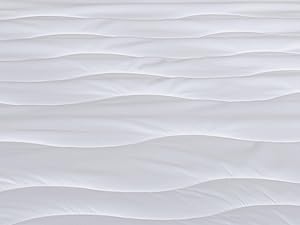 Der Topper ist mit einem hautsympathischen Mikrofaserbezug aus 100 Prozent Polyester ausgestattet. Dieser hochwertige Bezug ist beidseitig versteppt mit einer Klimafaser von 150 g/m², die nicht nur für ein angenehmes Hautgefühl sorgt, sondern auch die Luftzirkulation fördert. So bleiben Sie stets angenehm temperiert und der Schlafkomfort wird merklich gesteigert.