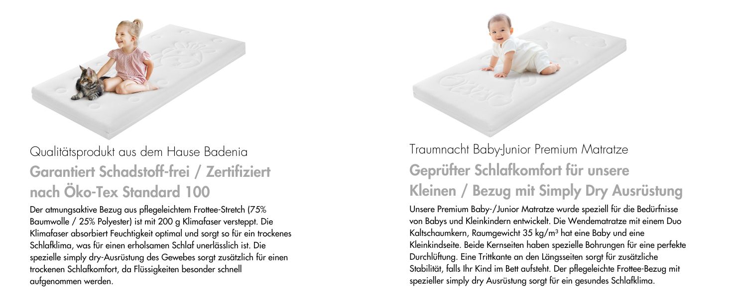 Traumnacht Premium Kindermatratze für Babys und Junioren, 70 x 140 cm, hautfreundlicher Bezug, Öko-Tex zertifiziert!Traumnacht Premium Kindermatratze für Babys und Junioren, 70 x 140 cm, hautfreundlicher Bezug, Öko-Tex zertifiziert!